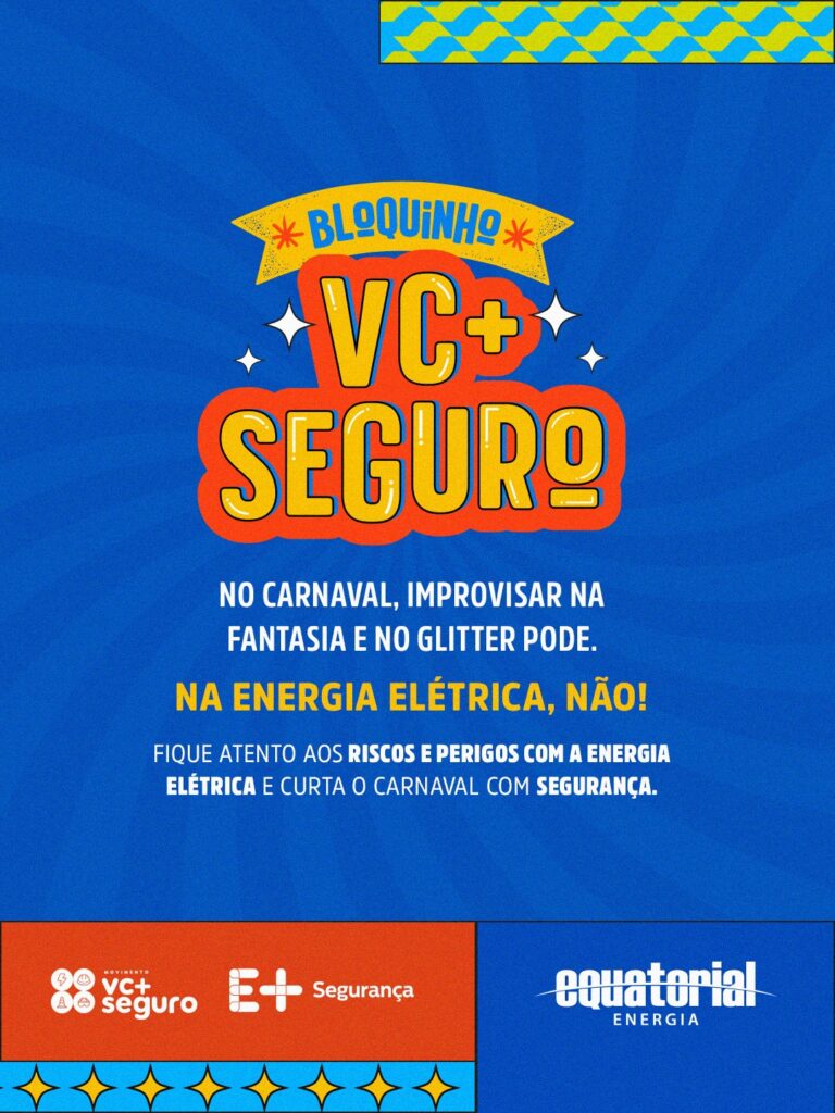 Ao unir informação, educação e engajamento, o “Bloquinho VC+ Seguro” evidencia o compromisso do Grupo Equatorial em informar e conscientizar a população sobre cuidados fundamentais com a energia, contribuindo para um Carnaval seguro e responsável.